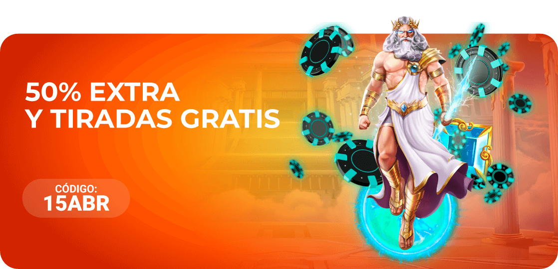 El usuario que realice un depósito de 15€ o más con el código 15ABR recibirá un 50% extra en el mismo hasta recibir un máximo de 40€ en bono casino y 20 tiradas gratis en la slot Gates of Olympus.