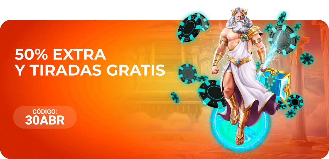 El usuario que realice un depósito de 30€ o más con el código 30ABR recibirá un 50% extra en el mismo hasta recibir un máximo de 30€ en bono casino y 10 tiradas gratis en la slot Gates of Olympus.