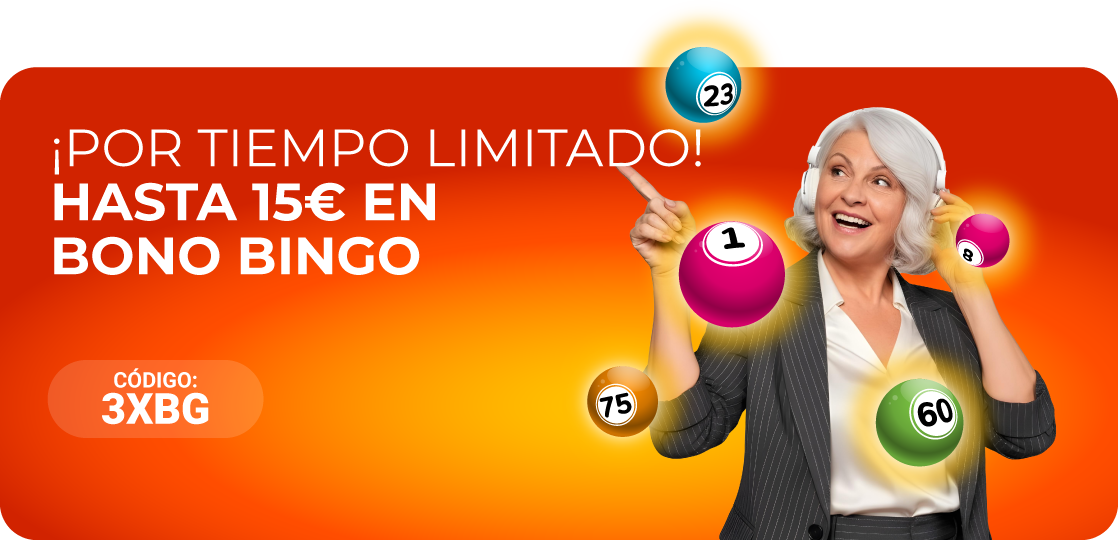 Haz un depósito de 10€ o más con el código 3XBG y ¡listo! Recibirás al instante 5€ de Bono Bingo.