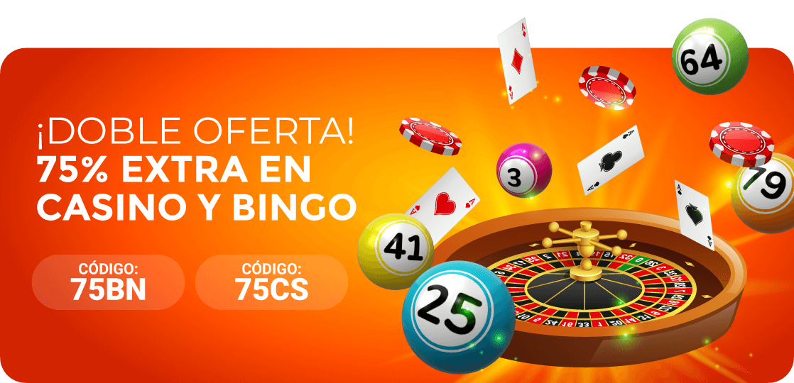 El usuario que realice un depósito de 20€ o más usando el código 75BN conseguirá un 75% extra al instante, 15€ en Bono Bingo.