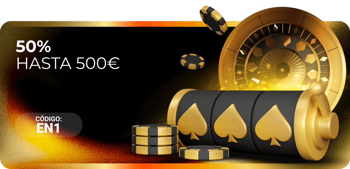 Haz un depósito de 50€ o más con el código EN1 y recibe un 50% EXTRA en el mismo, ¡podrás conseguir hasta 500€ en Bono Casino!