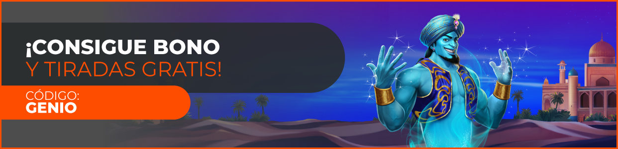 Deposita 20€ o más con el código GENIO y consigue un 100% EXTRA hasta 75€ en bono, además obtendrás 10 Tiradas Gratis en la slot 3 Genie Wishes. ¡Pide tu deseo y mira cómo se cumple!