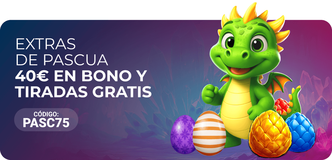 Empieza este miércoles con los mejores extras: Haz un depósito de 10€ o más con el código PASC75 y recibe un 75% EXTRA en el mismo, ¡podrás conseguir hasta 40€ en Bono Casino! Y además, 10 Tiradas Gratis en la slot 3 Magic Eggs.