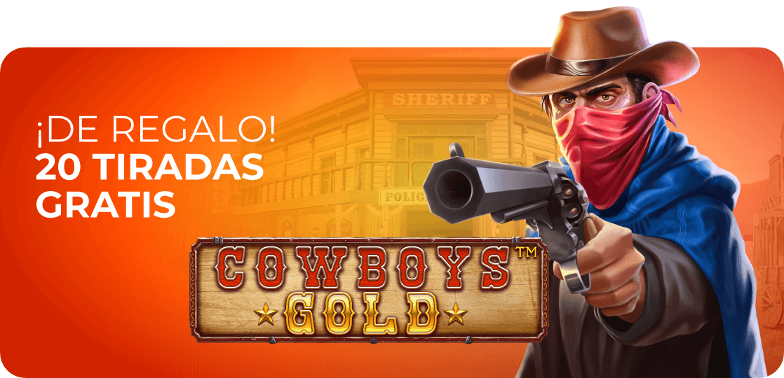Queremos que disfrutes de las slots con un regalazo: Hemos acreditado 20 tiradas gratis en Cowboys Gold. Sí, sí, ¡DE REGALO! Enhorabuena y que las disfrutes.