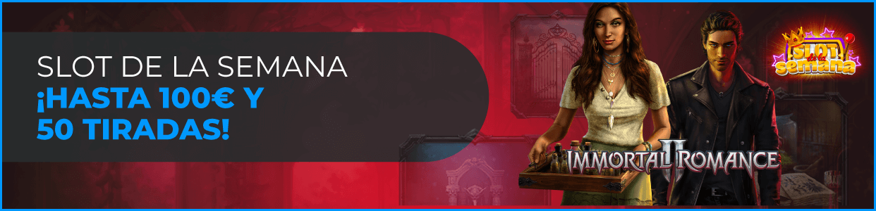 La promoción Slot de la Semana: Immortal Romance 2 tendrá lugar desde el 29 de mayo al 04 de junio de 2024 a las 23:59, hora peninsular española.