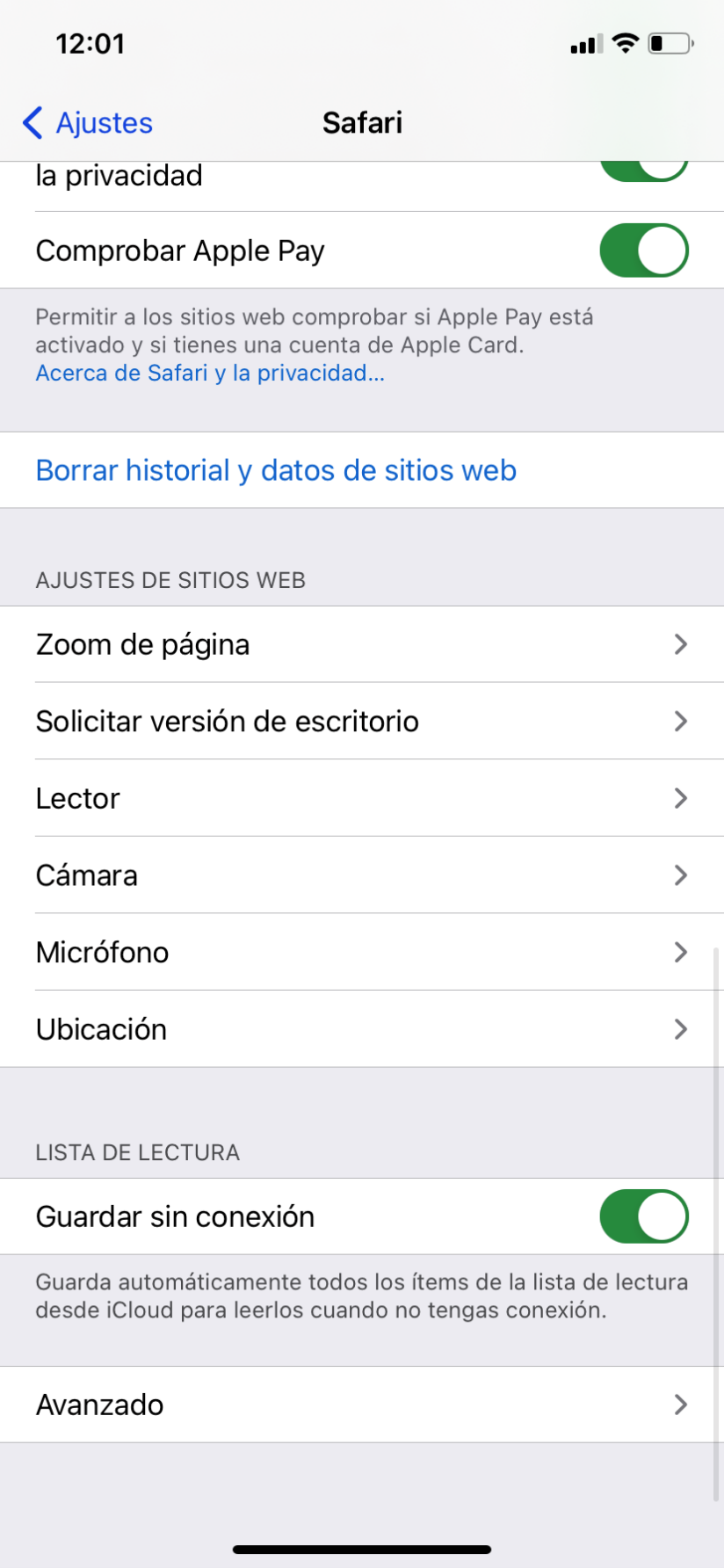 En “Ajustes de Sitios Web” seleccione Cámara.